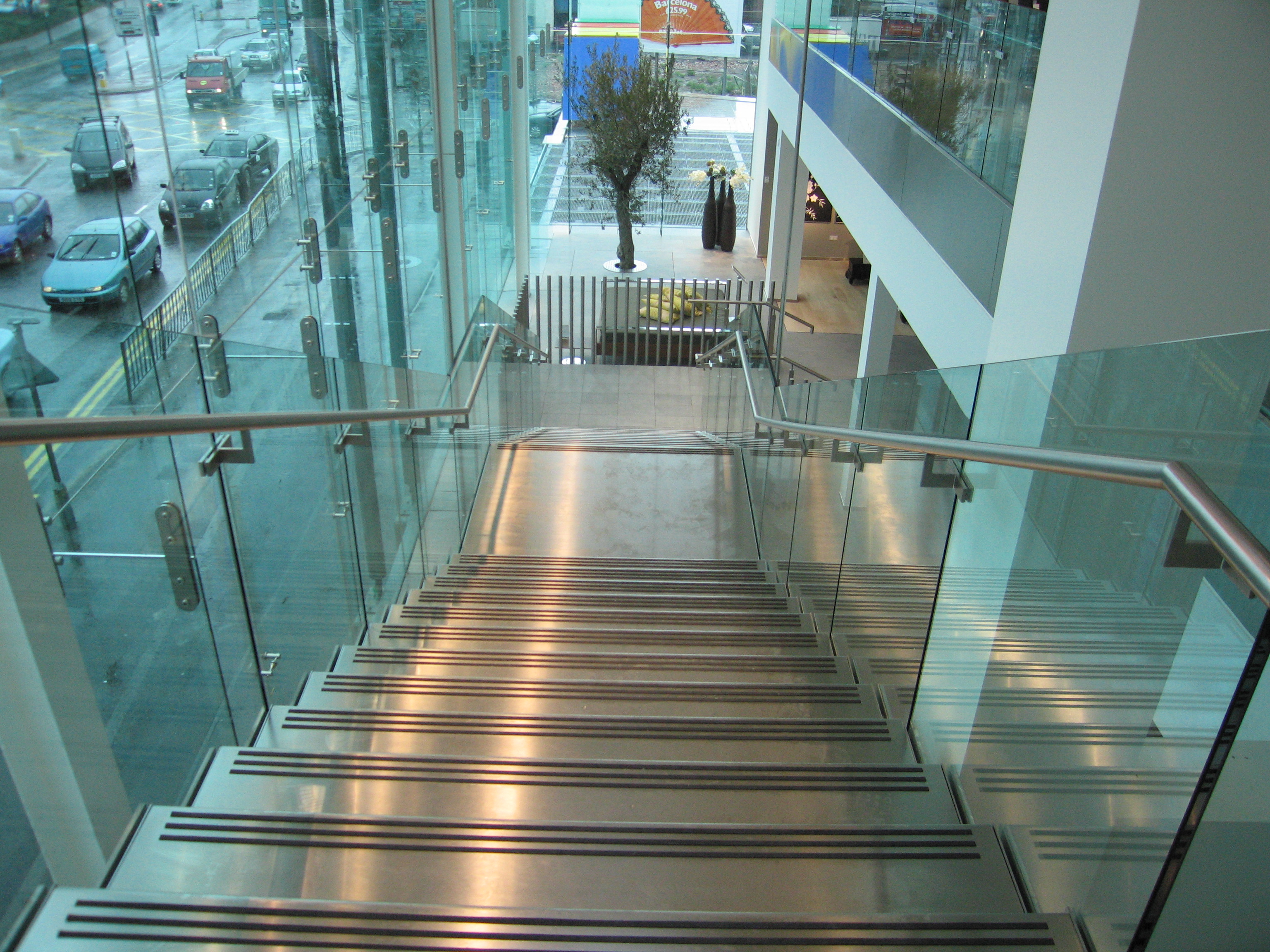 Stainless steel and glass feature stairs
