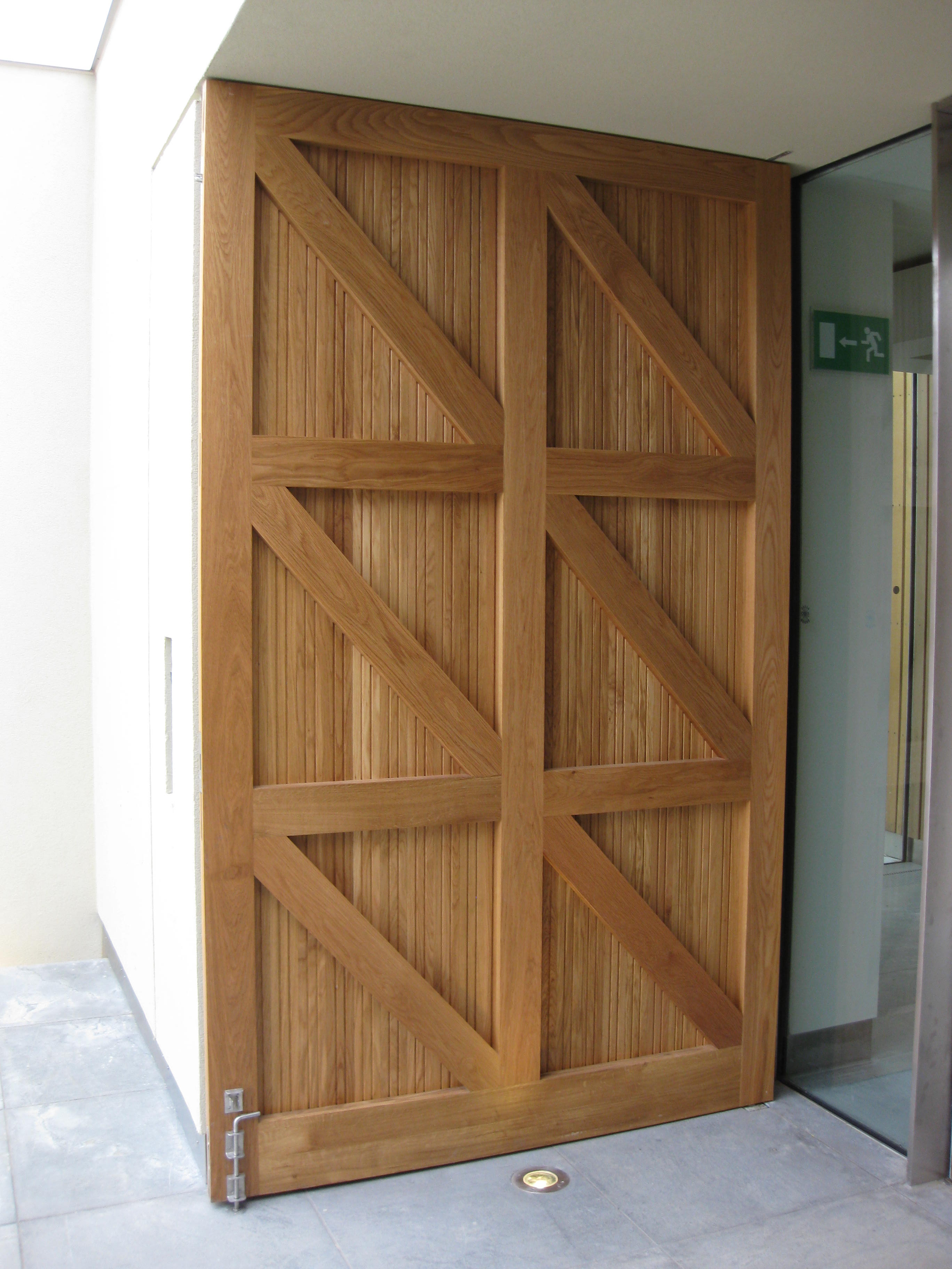 Bespoke Oak Cladding And Stainless Steel trims to Archive Building. Internal Joinery to offices. Traditional Oak Ledged and braced doors complete with internal insulation.